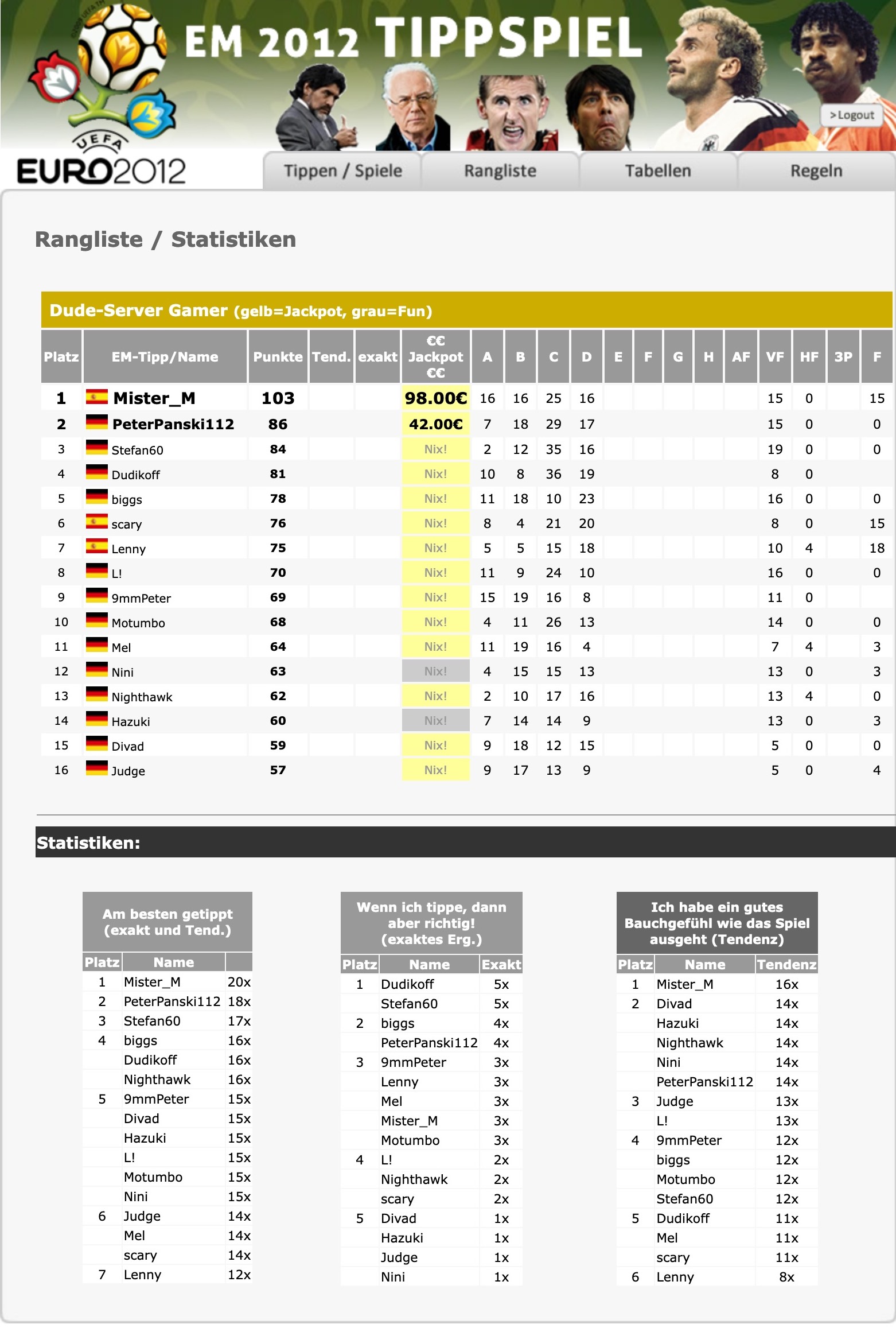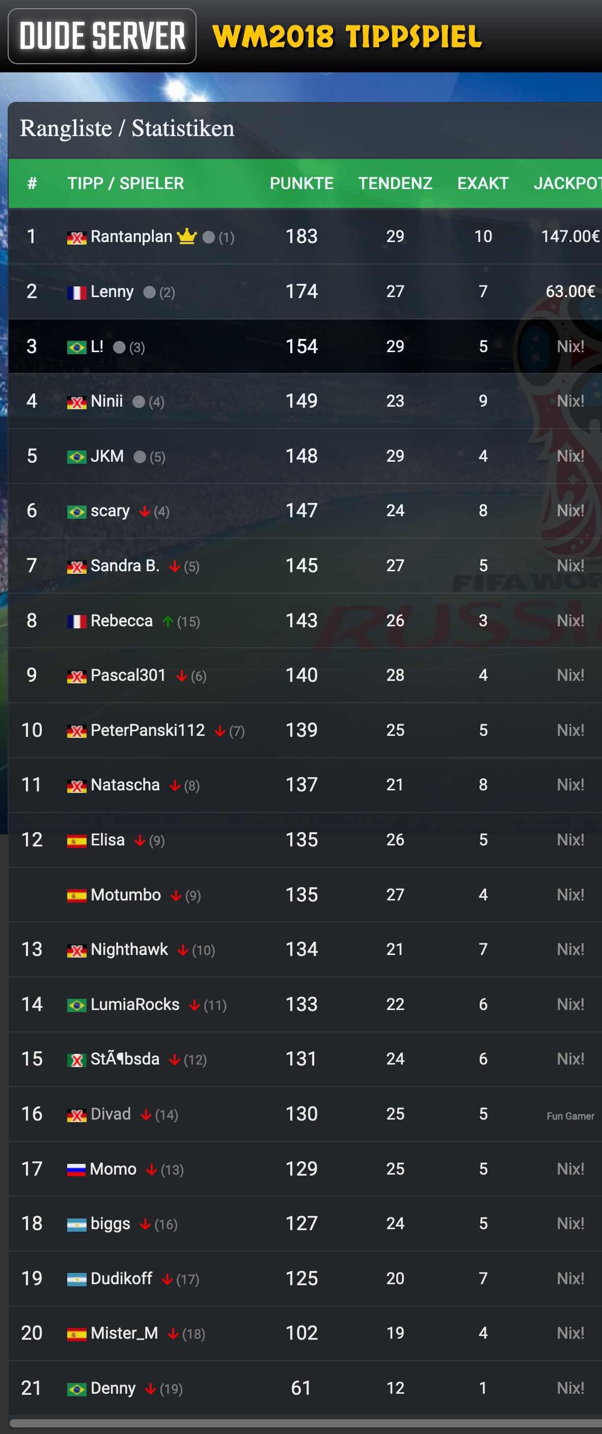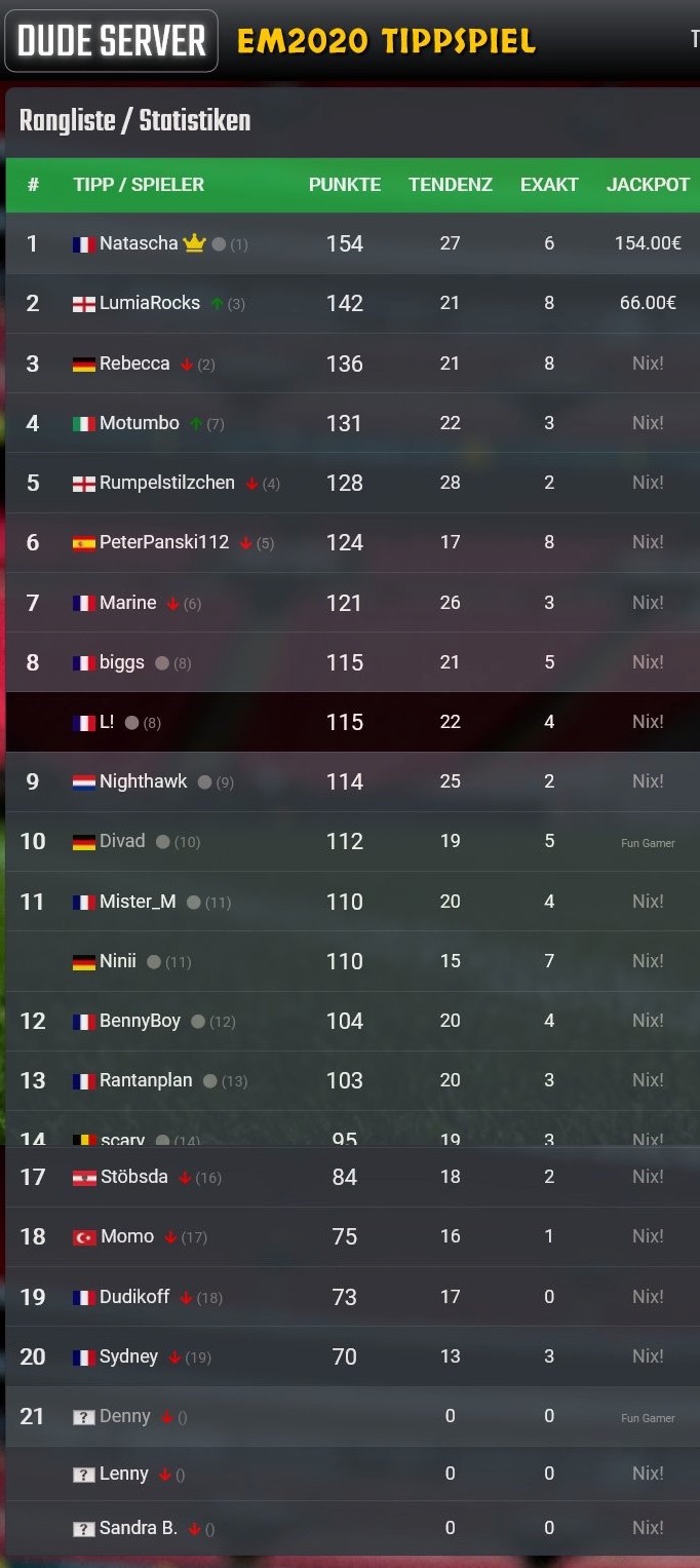Hall of Fame: Dude Server Tippspiel Historie