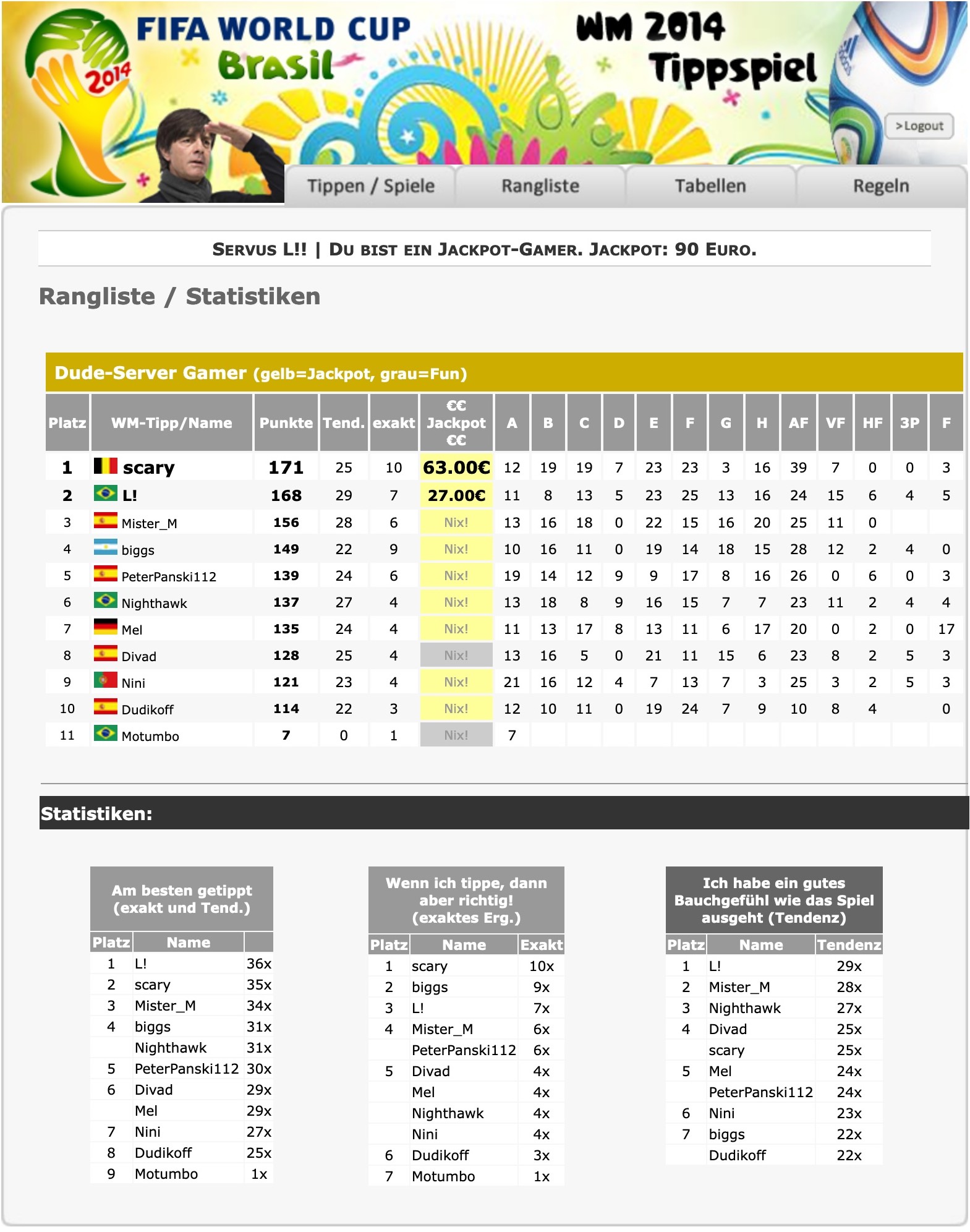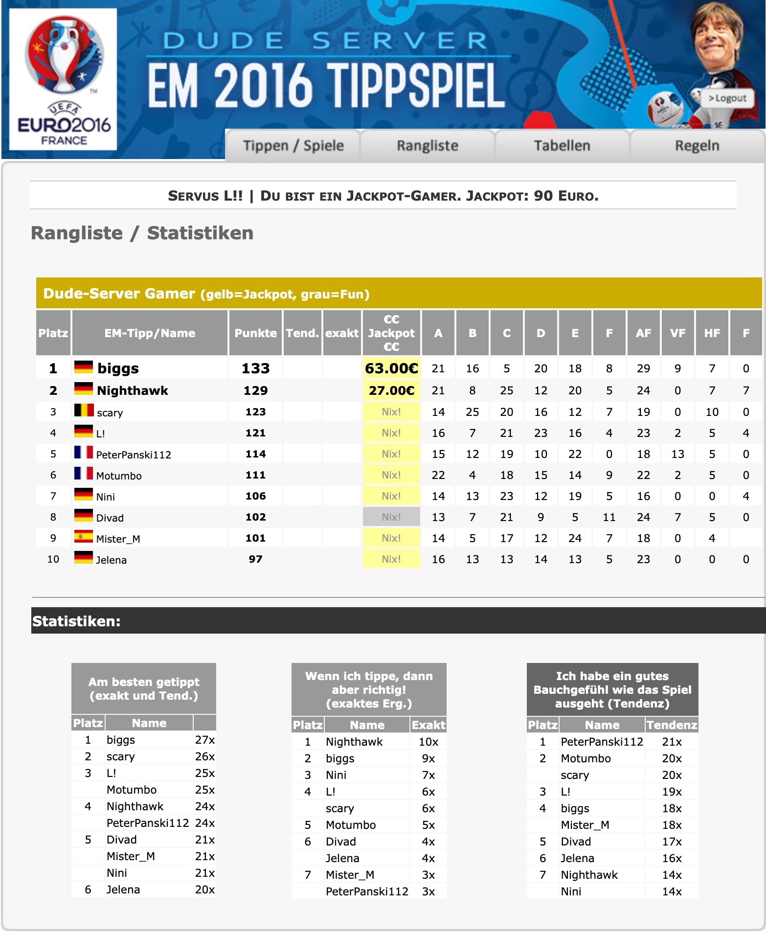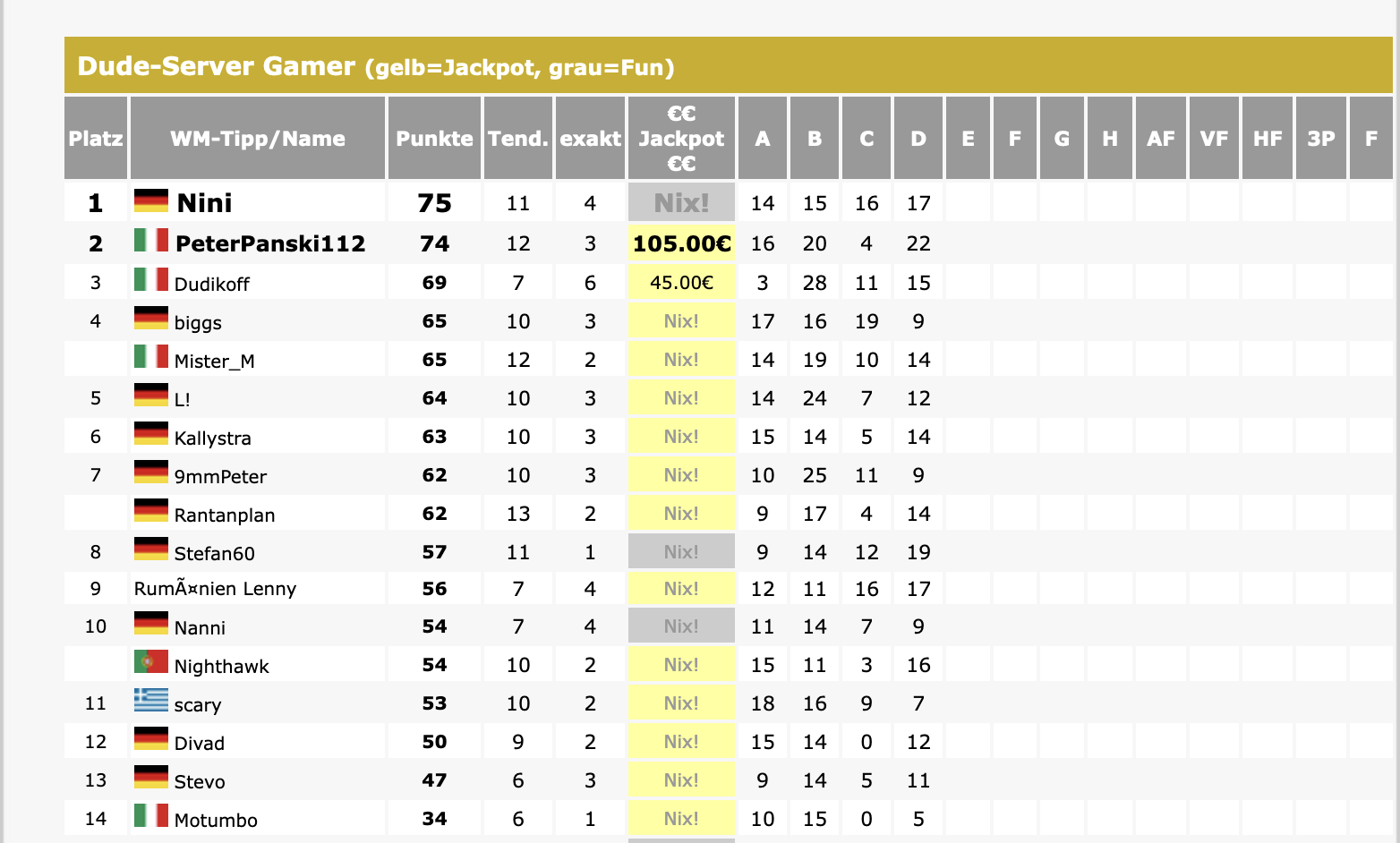 Hall of Fame: Dude Server Tippspiel Historie